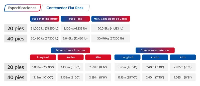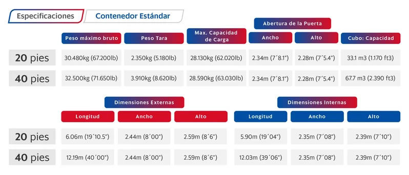 Sus medidas son las mismas del contenedor estándar, de 20 o 40 pies, reguladas por el International Organization for Standaritzation.